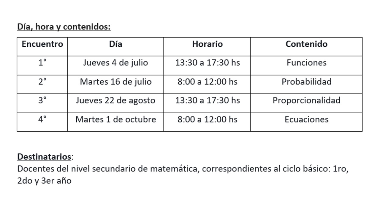 En función de la implementación del Plan Nacional "Aprender Matemática", la Provincia de Buenos Aires está convocando a los docentes de matemática del nivel secundario, para recibir las réplicas del mismo.